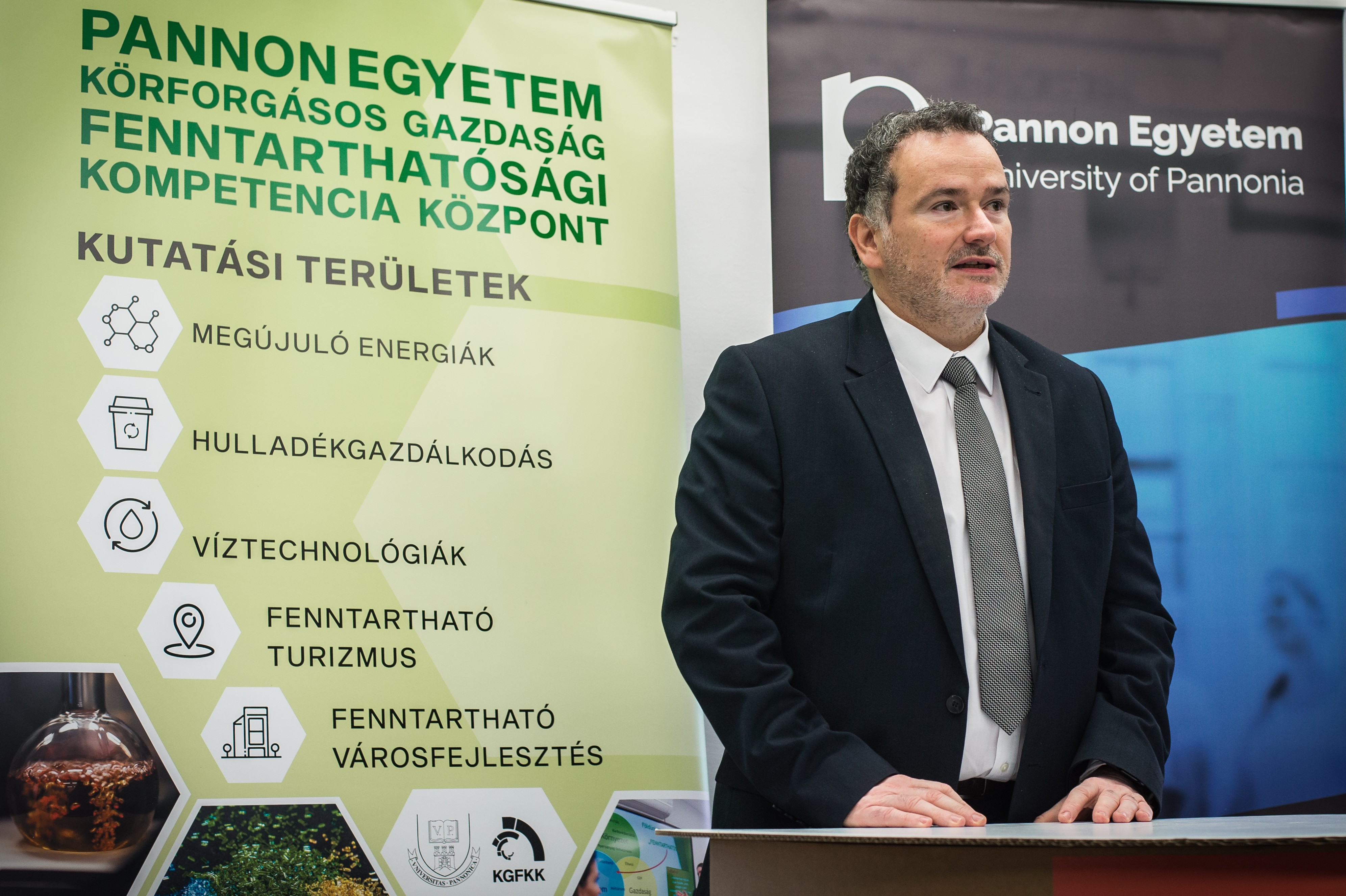– Öt kutatási területen indultunk el: megújuló energiák, hulladékgazdálkodás, víztechnológiák, fenntartható turizmus, fenntartható városfejlesztés. A kompetenciaközpont segítségével az egyetemen működő, hatalmas tudást felhalmozó, kutatási infrastruktúrával rendelkező szervezeti egységekből össze tudjuk válogatni azt a csapatot, amelynek tagjai meg tudják valósítani az adott feladatot. A kutatási tevékenység mellett azt tapasztaltuk, hogy fontos megtalálnunk egy olyan kommunikációs nyelvet, amellyel egyaránt meg tudjuk szólítani az akadémiai és a piaci szereplők mellett a lakosságot is, mert úgy nem lehet előrehaladni, ha mindenki más nyelvet beszél, és nem értjük, hogy ki mit csinál.